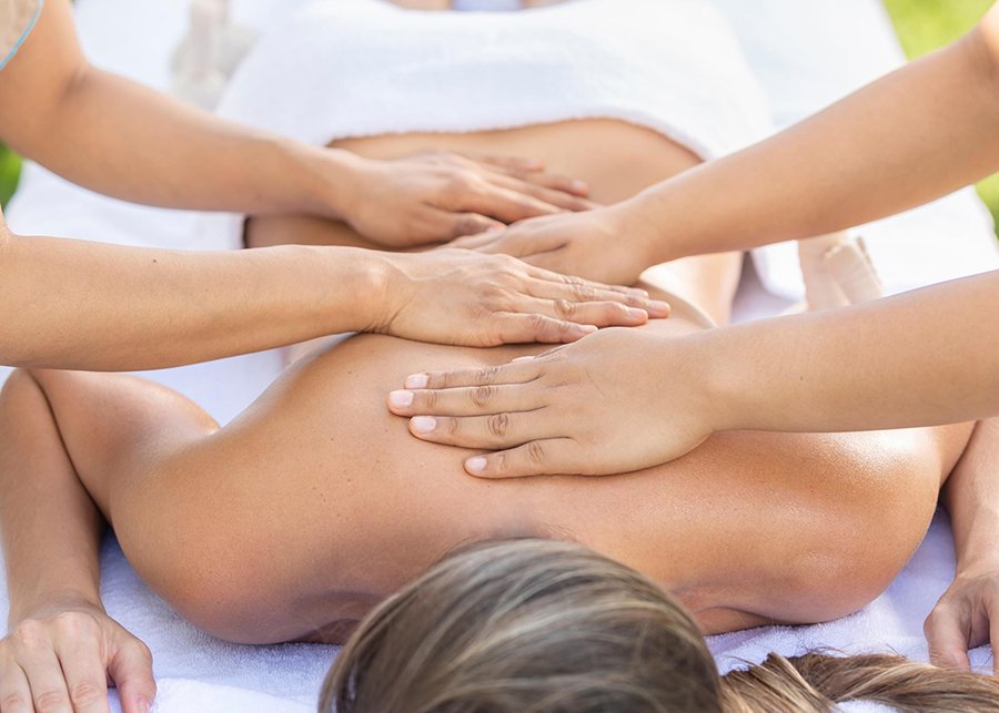 In a four hand massage, two therapists work on one client often using synchronized moves. A four hands massage can be like experiencing two full body massages at the same time.